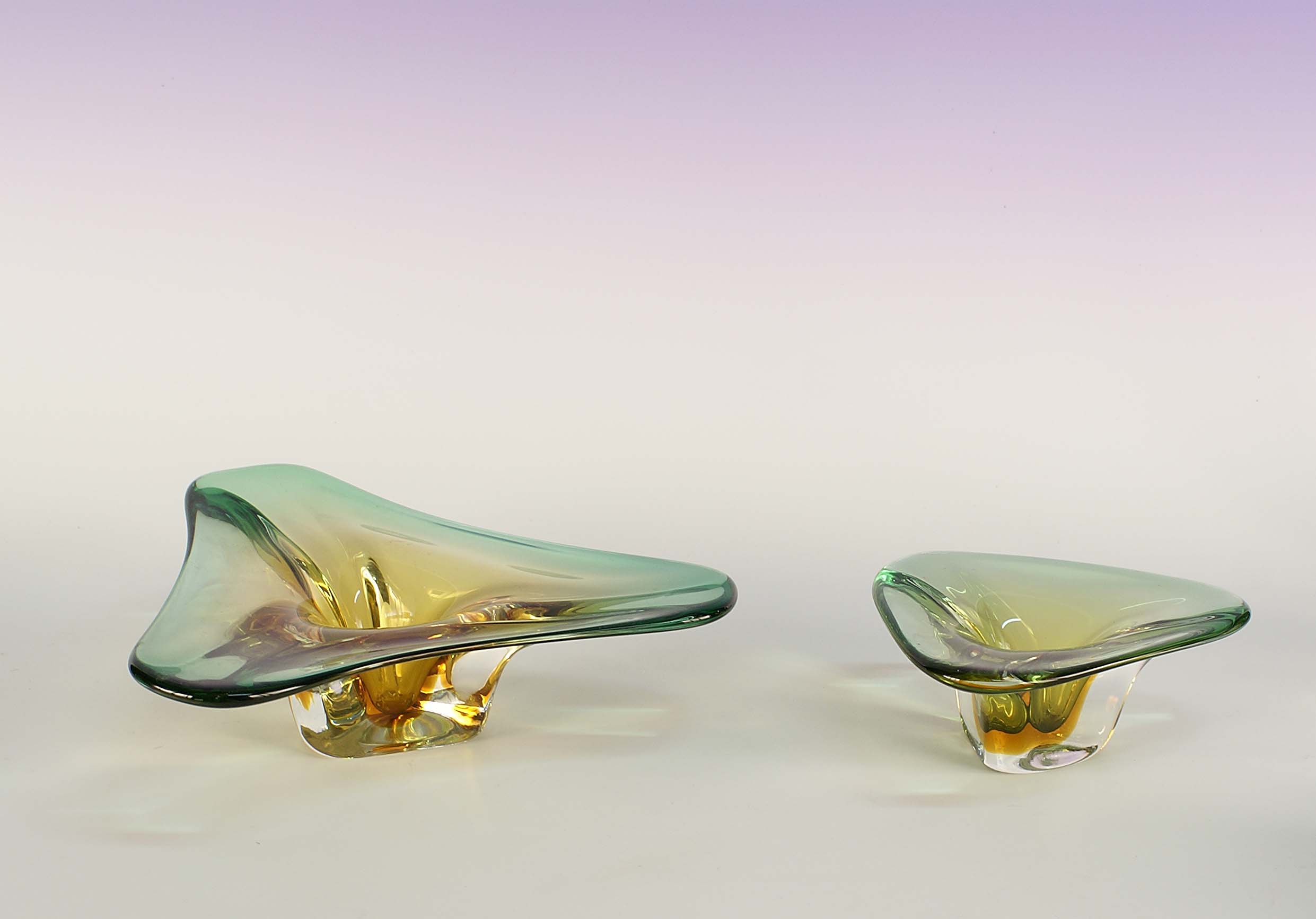 Lotto composto da due centrotavola in vetro sommerso, Murano, anni 50/60,...