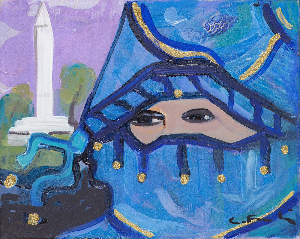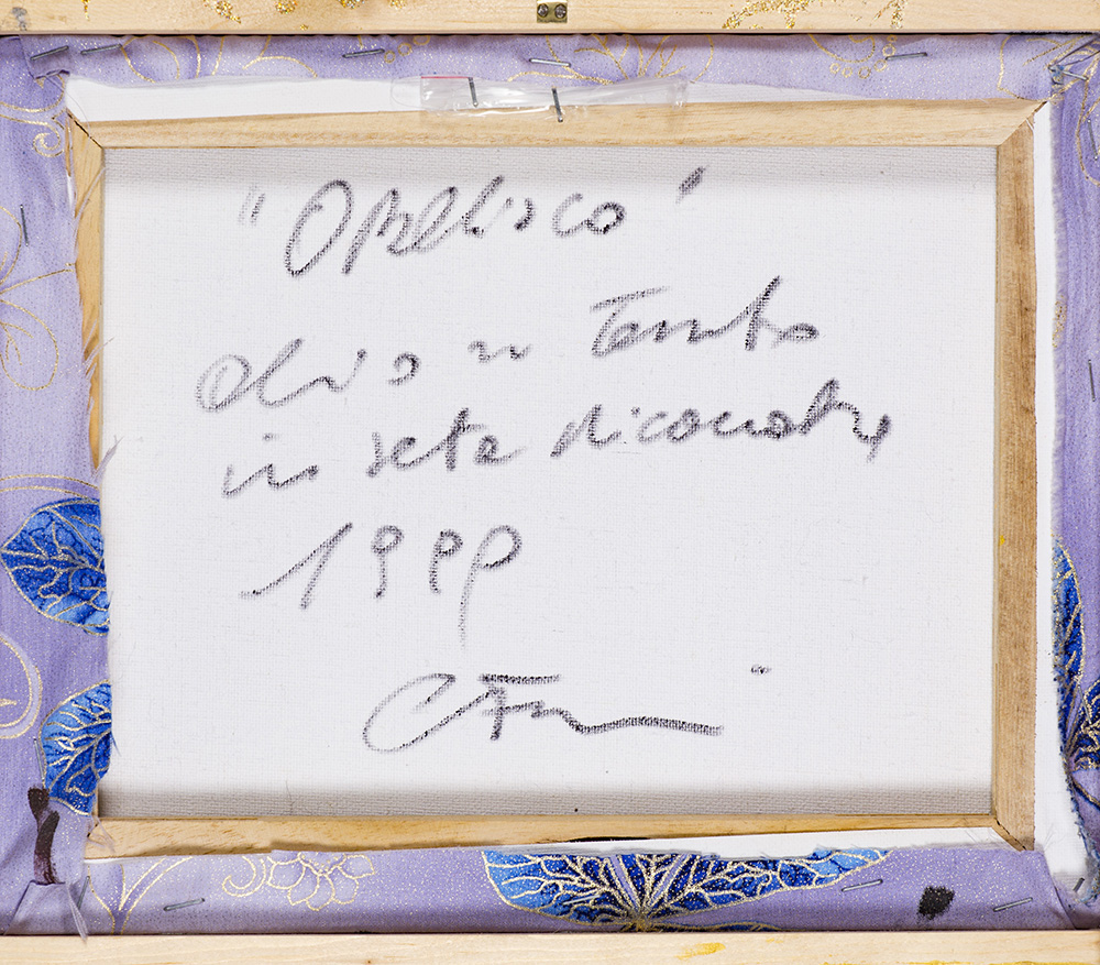 CARLO MASSIMO FRANCHI (1961) Obelisco, 1999 Olio su tenda in seta ricamata cm...
