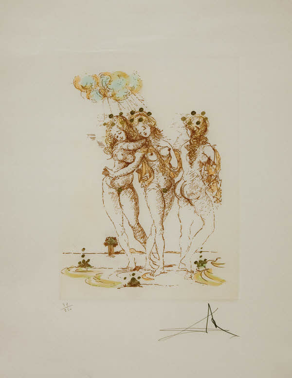 Salvador Dalì - Senza titolo - acquaforte,es. 31/250 cm. 26x18 - l’inciso - cm. 55x38 - L ’opera presenta alcune piegature. Firma in basso a dx