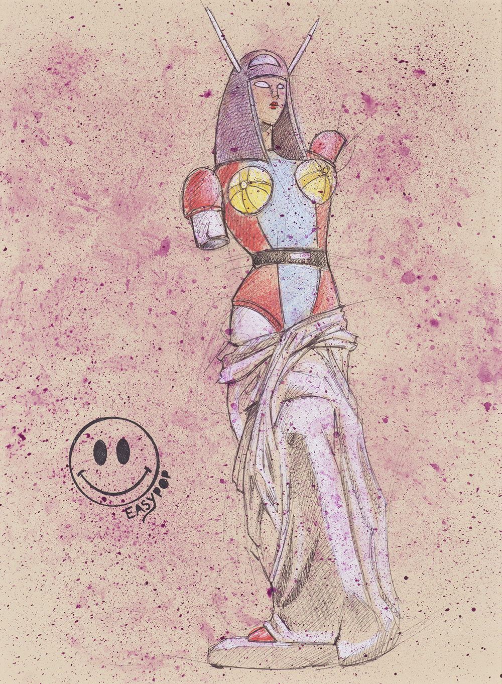 EASY POP Senza Titolo Tecnica mista su carta cm 40x30 Firma al fronte Dedica...
