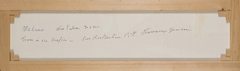 Firma, titolo, tecnica, località e dichiarazione di autenticità al retro