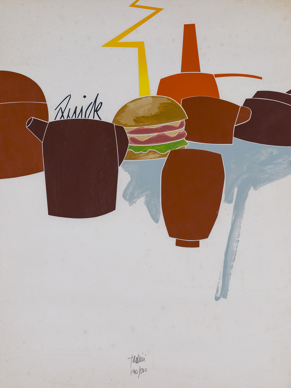 EMILIO TADINI (1927-2002) Natura morta con hamburger Serigrafia cm 65x49...