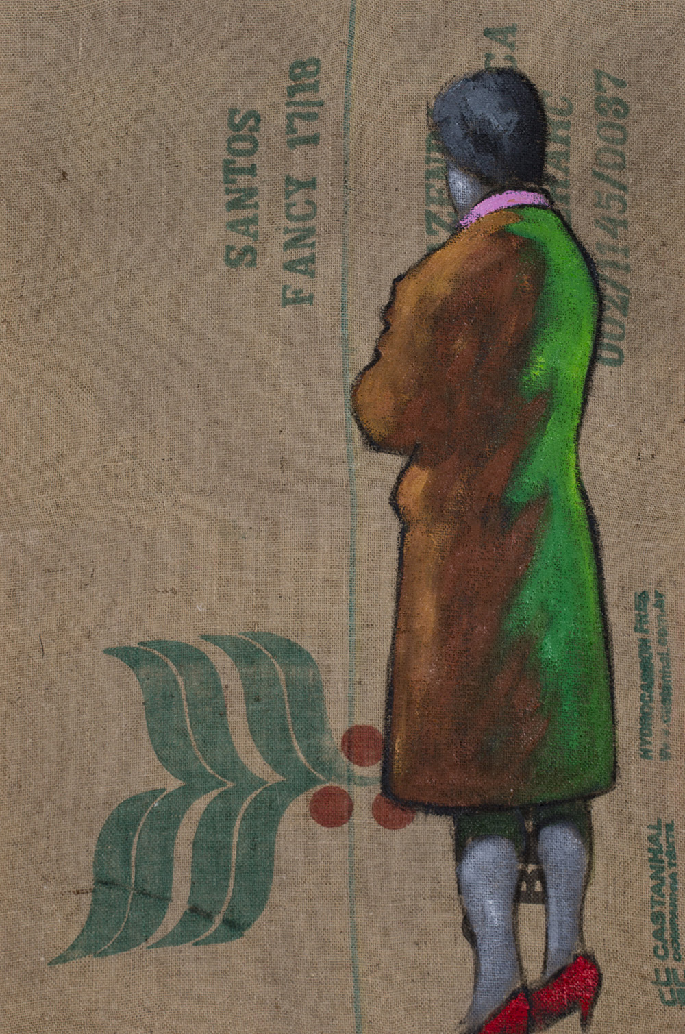 HANNU PALOSUO (1966) Tomorrow never knows, 2014 Olio su sacco di juta cm...