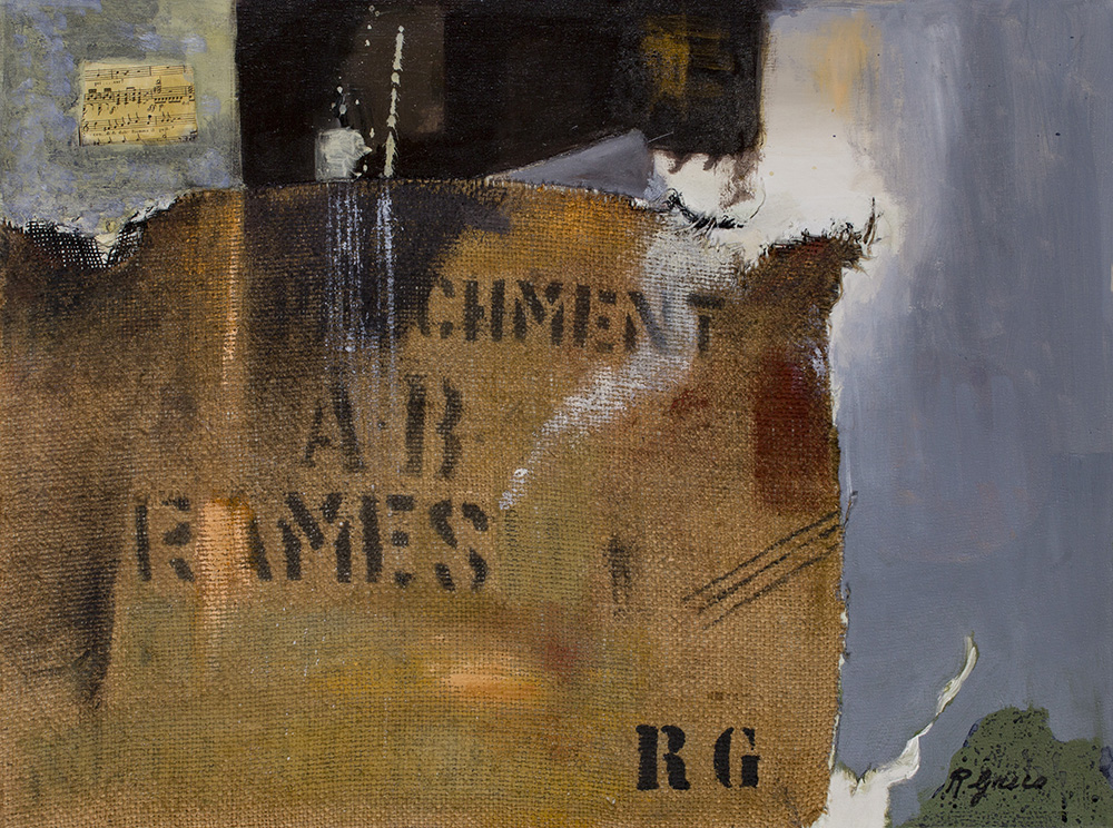 ROBERTO GRECO (1936) Senza Titolo Tecnica mista e applicazioni di juta su...
