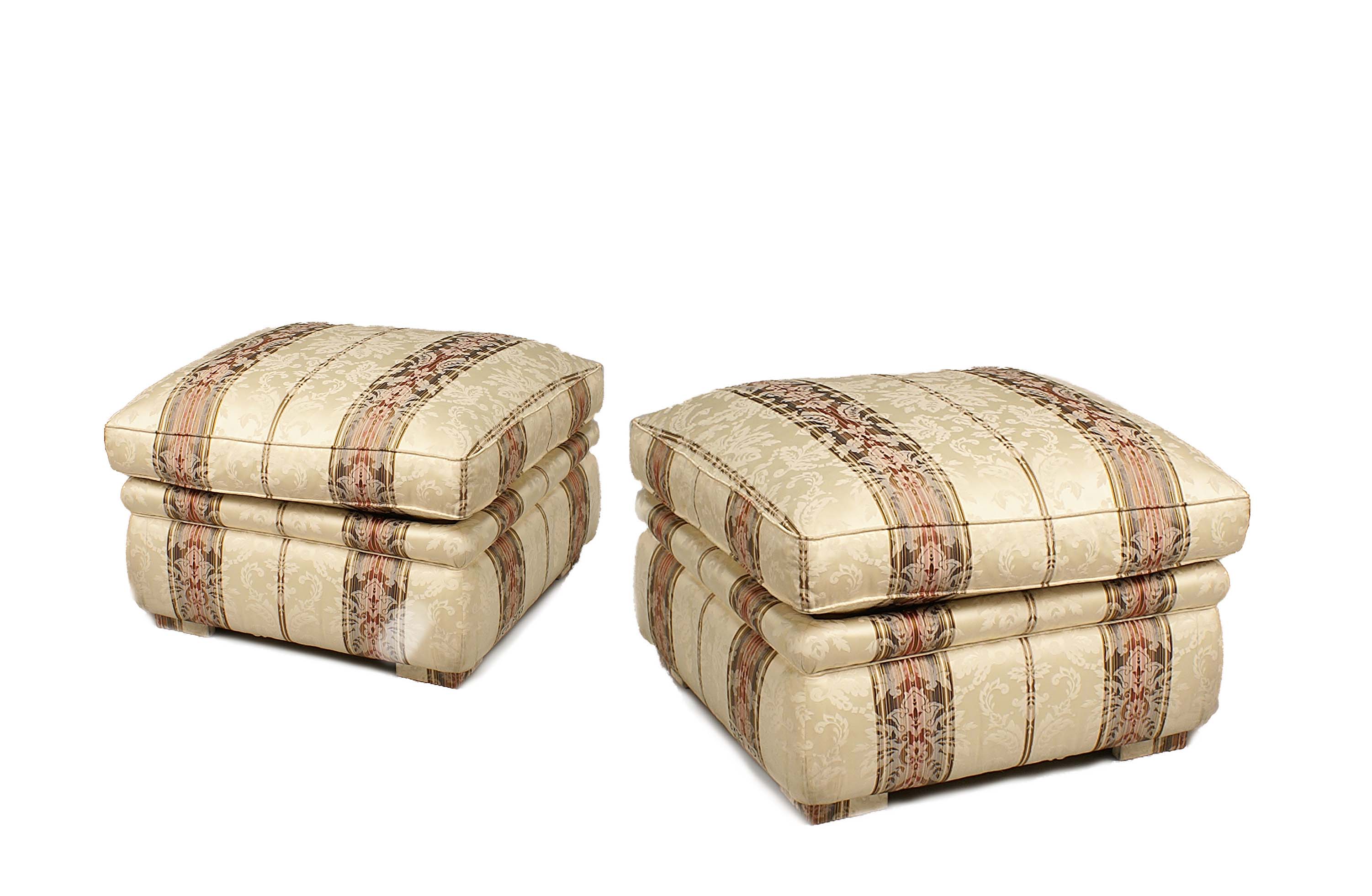 Lotto 863 | Coppia di pouf interamente imbottiti e rivestiti in tessuto, cm. 45x70x70.