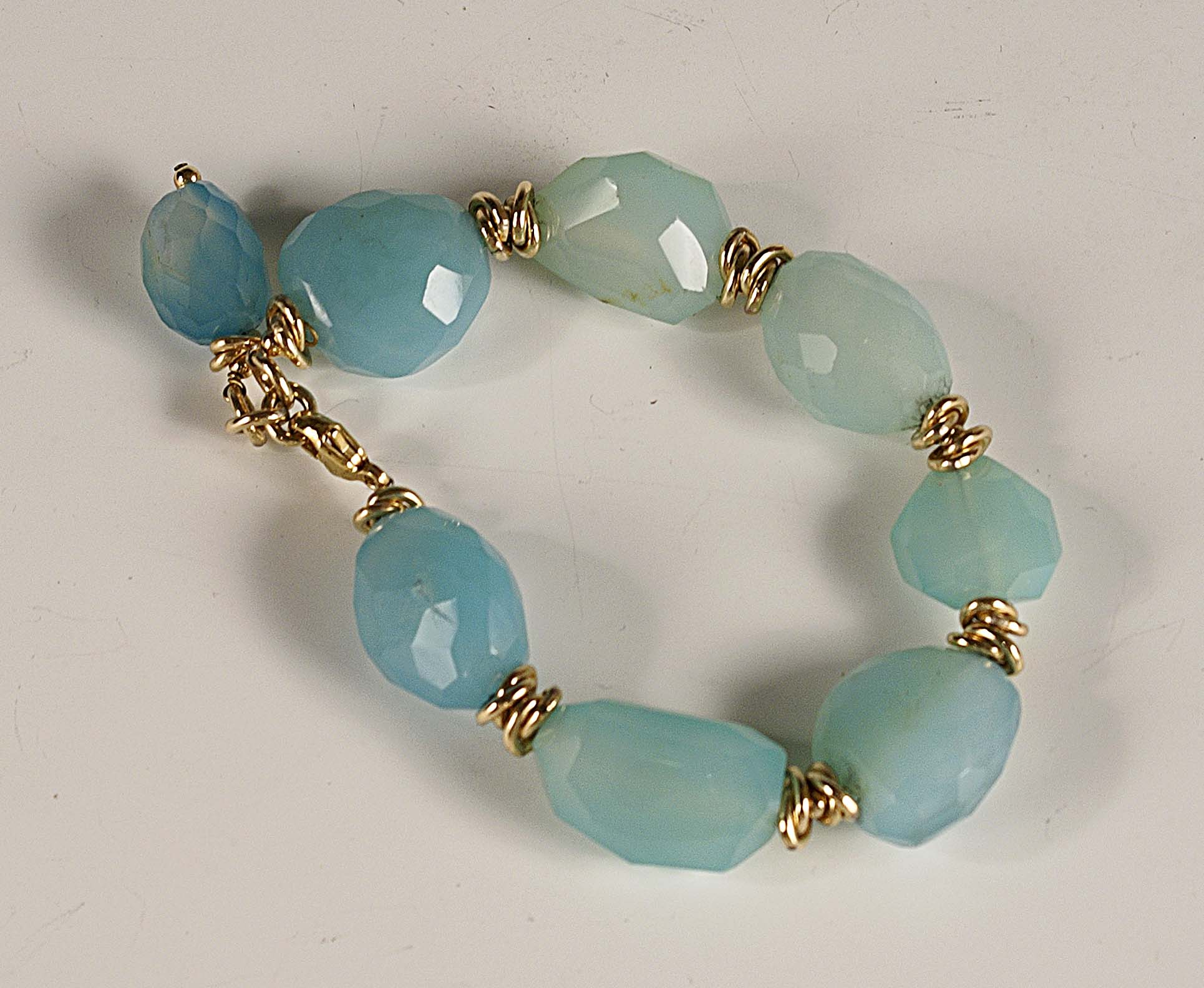 Bracciale bijoux con sfere in ambra ed elementi in agata azzurra.
