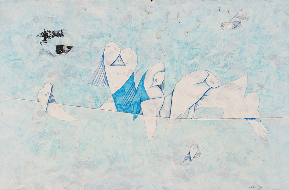 GIANNI DOVA (1925-1991) Nell'azzurro, 1971 Tecnica mista su cartoncino cm...