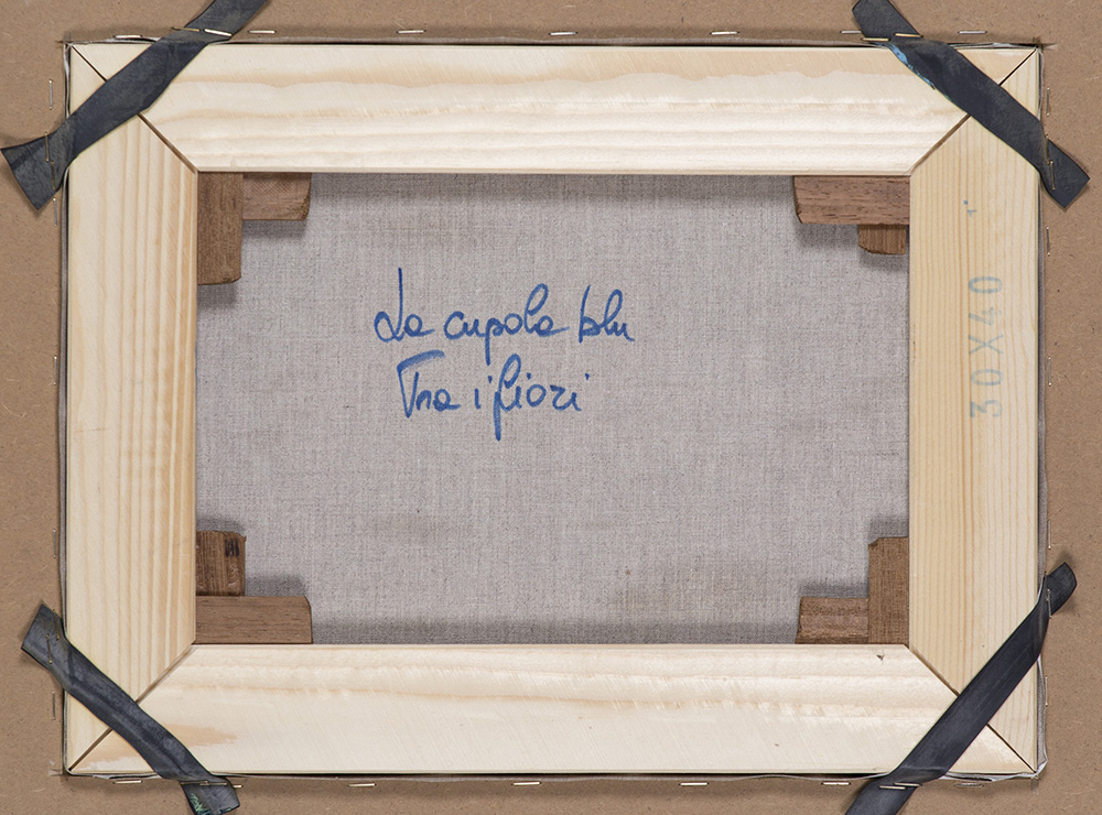 ATHOS FACCINCANI (1951) La cupola blu tra i fiori Olio su tela cm 30x40 Firma...