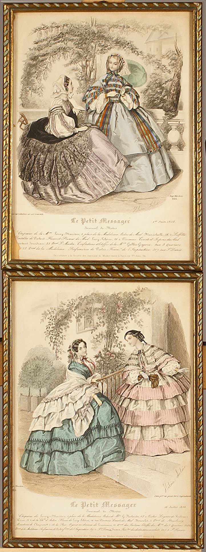 Scuola francese del XIX secolo, coppia di stampe raffiguranti personaggi femminili, cm.26x18,5.
