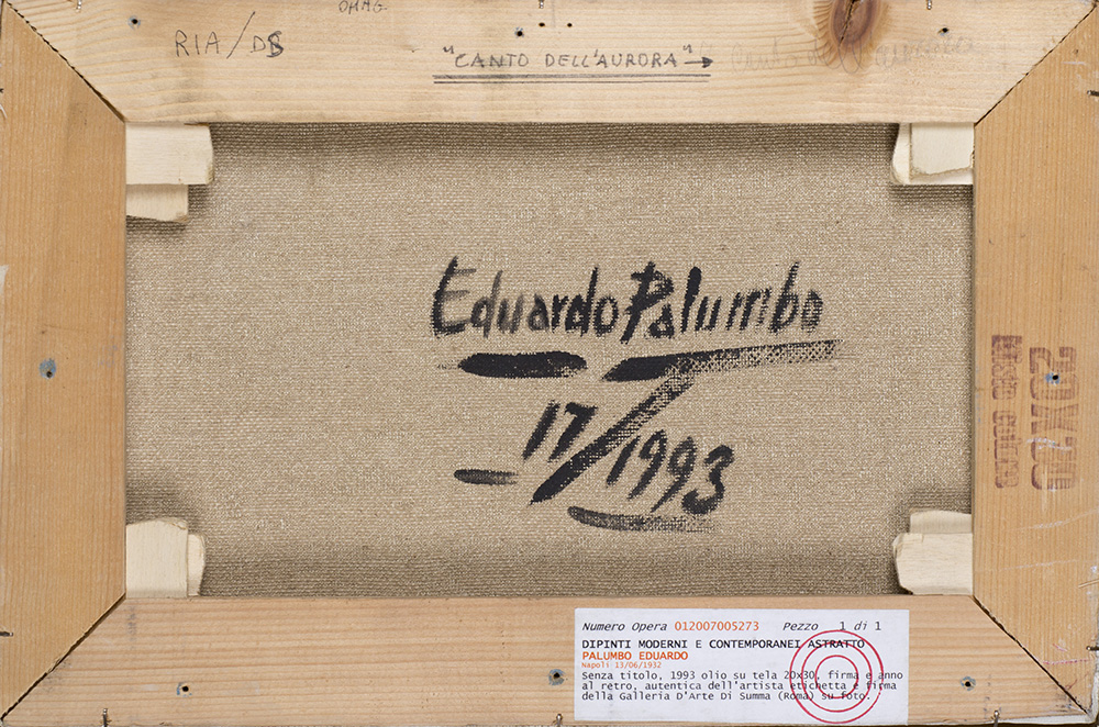 EDUARDO PALUMBO (1932) Canto dell'aurora, 1993 Olio su tela cm 20x30 Firma e...