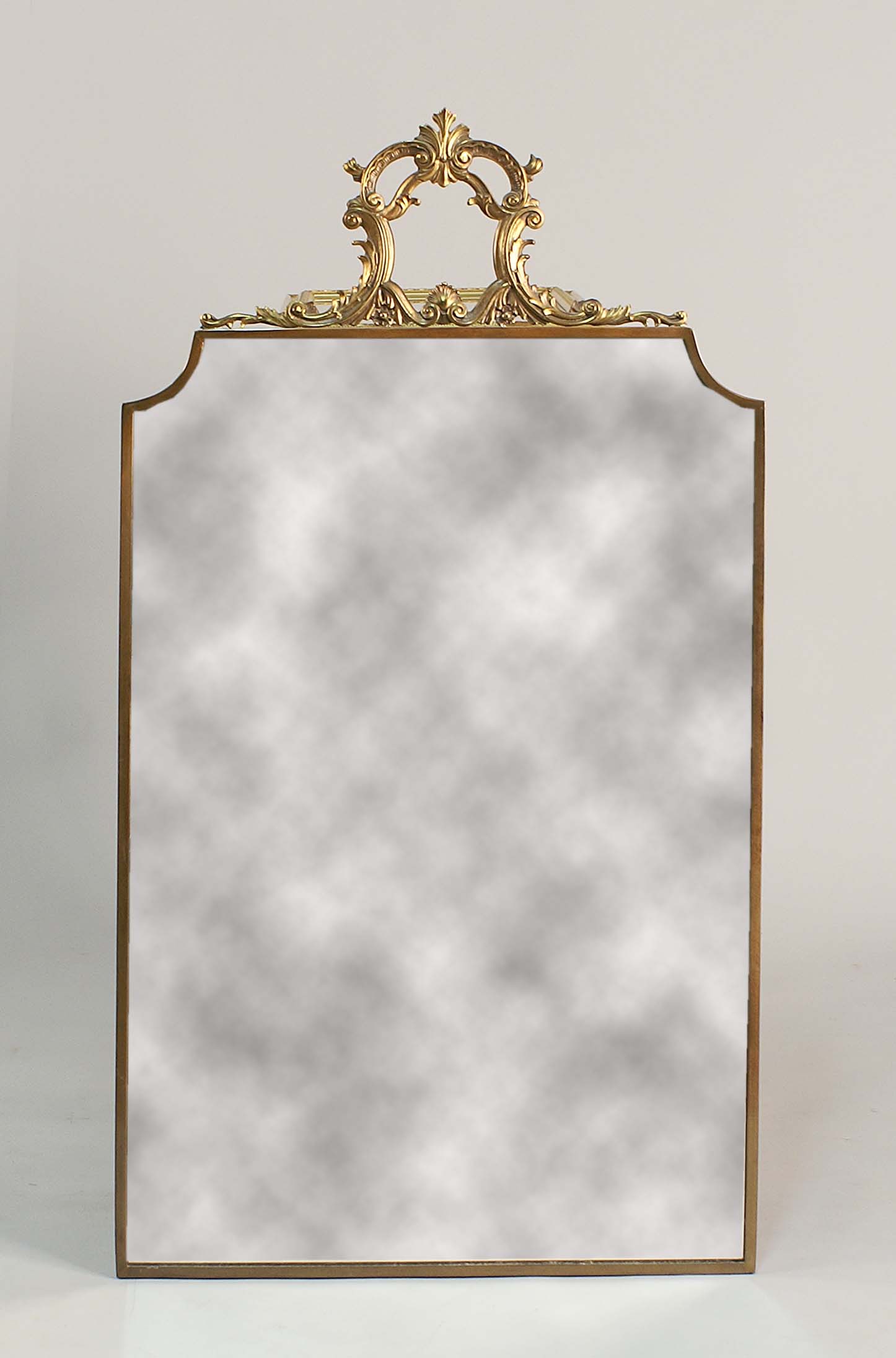 Specchiera rettangolare con cornice e cimasa in bronzo dorato, vecchia...