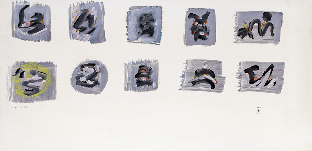 SERGIO DANGELO (1932) Dieci affetti, 1958 Tecnica mista su carta intelata cm...