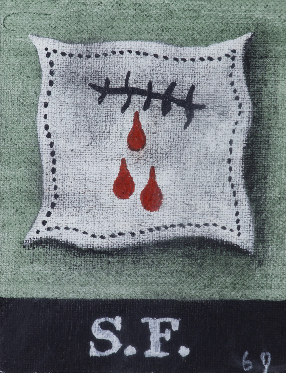 SERGIO FERGOLA (1936-1994) Piccola ferita, 1969 Olio su cartone telato cm...