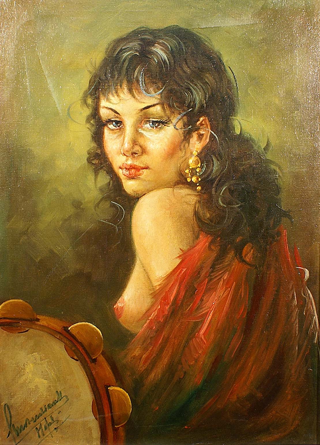 Lucio Vecchiarelli(XX secolo), "Gitana", olio su tela, cm. 70x50, firmato in basso a sinistra.