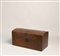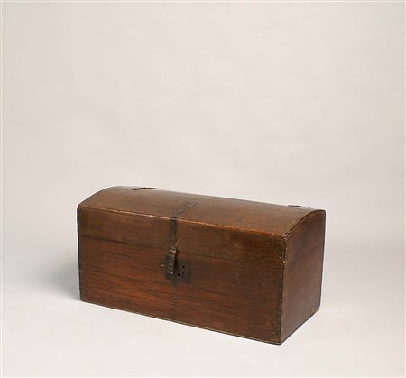 Baule in legno di rovere con cerniere e serrature in ferro, fine del XIX secolo, cm. 42x85x42.