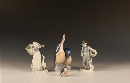 Lotto composto da quattro gruppi in porcellana policroma, Danimarca, vecchia...