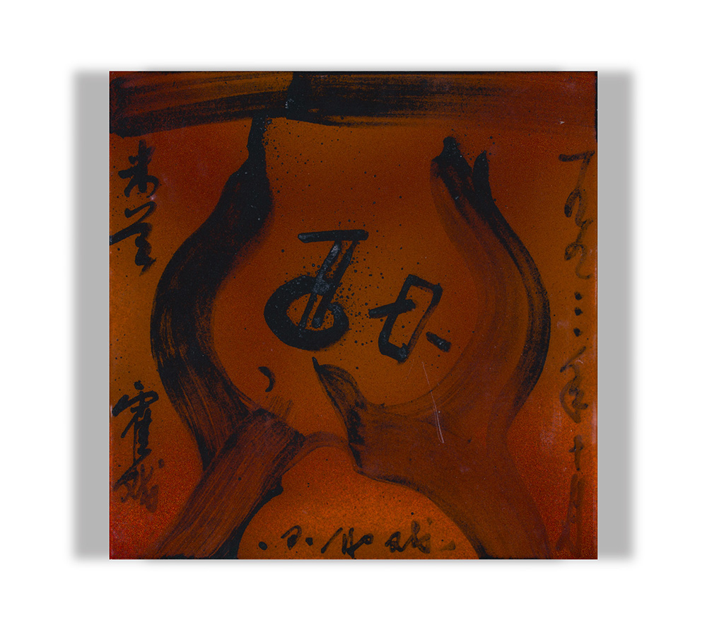HO KAN (1932) Senza Titolo Tecnica mista e vetro su ceramica cm 40x40x1 Firma...
