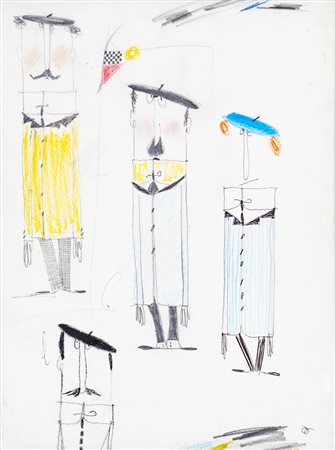 PINO PASCALI (1935-1968) Omini Francesi, '60 circa Tecnica mista su carta cm...