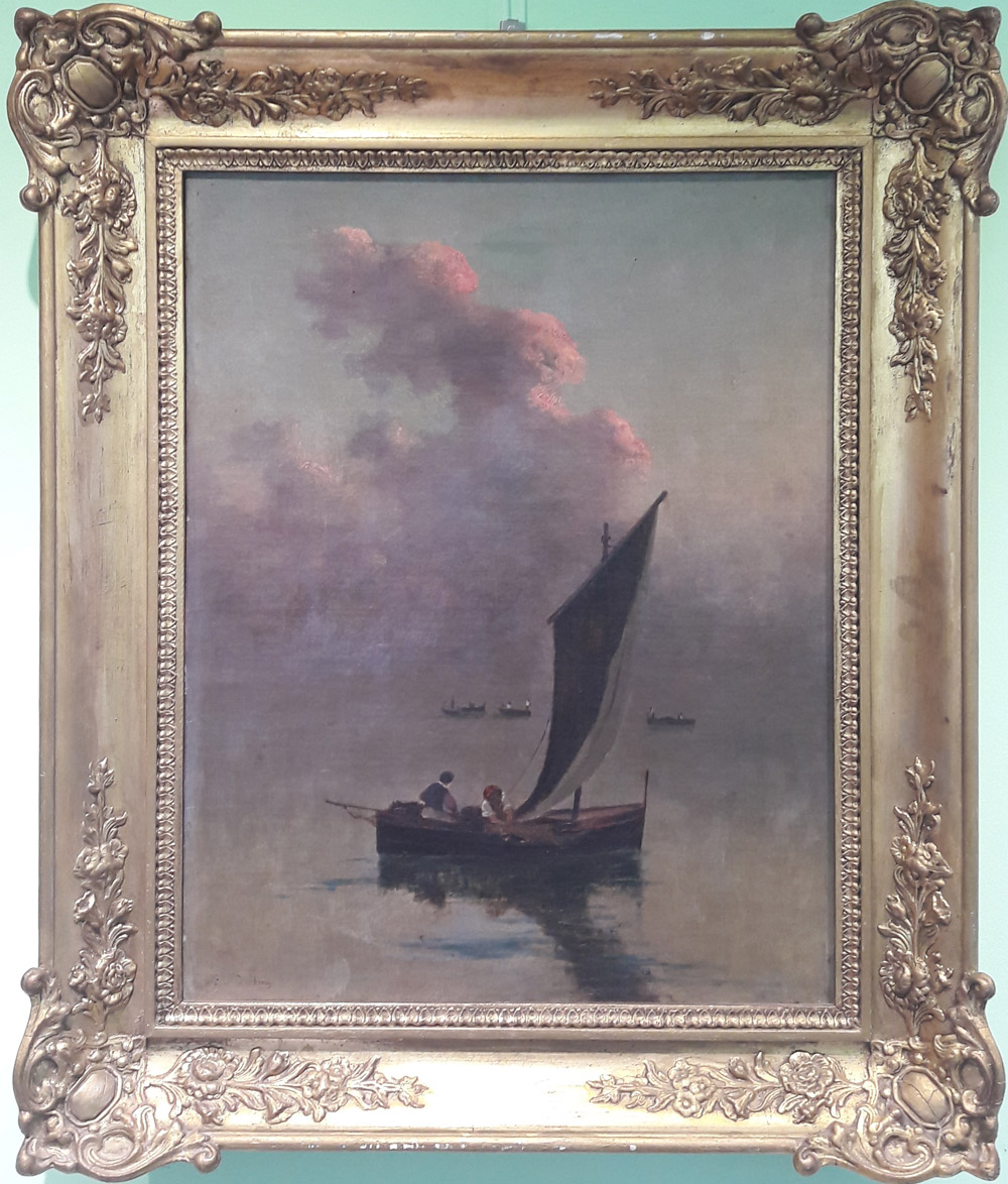 Scuola nordeuropea dell'800 "Barche al tramonto" - Olio su tela - cm 50x40 - Firma dell'artista non decifrata in basso a sx