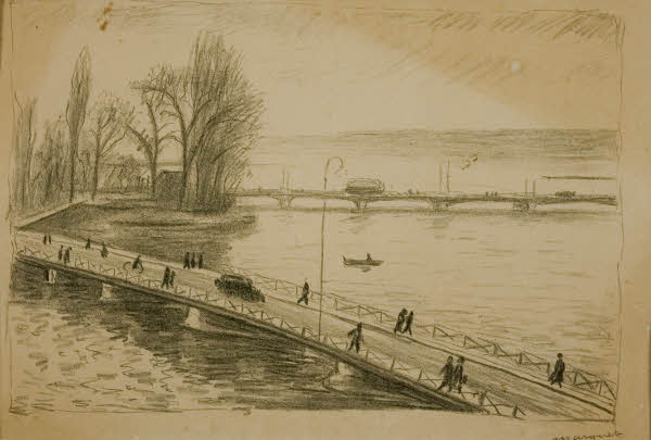 Albert Marquet - Ponte di Bergues con l’isola di Rousseau – 1940 - litografia originale in nero, tiratura 100 es. cm. 22x32 l’inciso - cm. 46x36. Certificato di originalità a cura del prof. Giuliano Agostinetti. L ’opera presenta un piccolo strappo in basso a sx ed alcune macchie; dell’opera sono stati tirati 100 esemplari firmati dall’artista ma non numerati. Firma in basso a dx