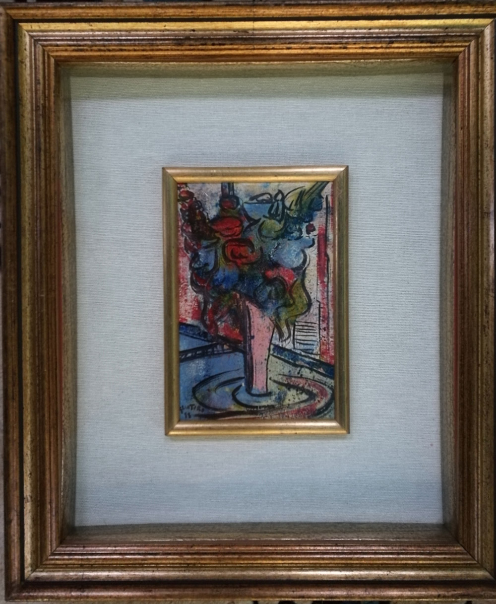 Silvio Vigliaturo "Vaso con fiori" - Olio su cartoncino - cm 15x10 - Firma...