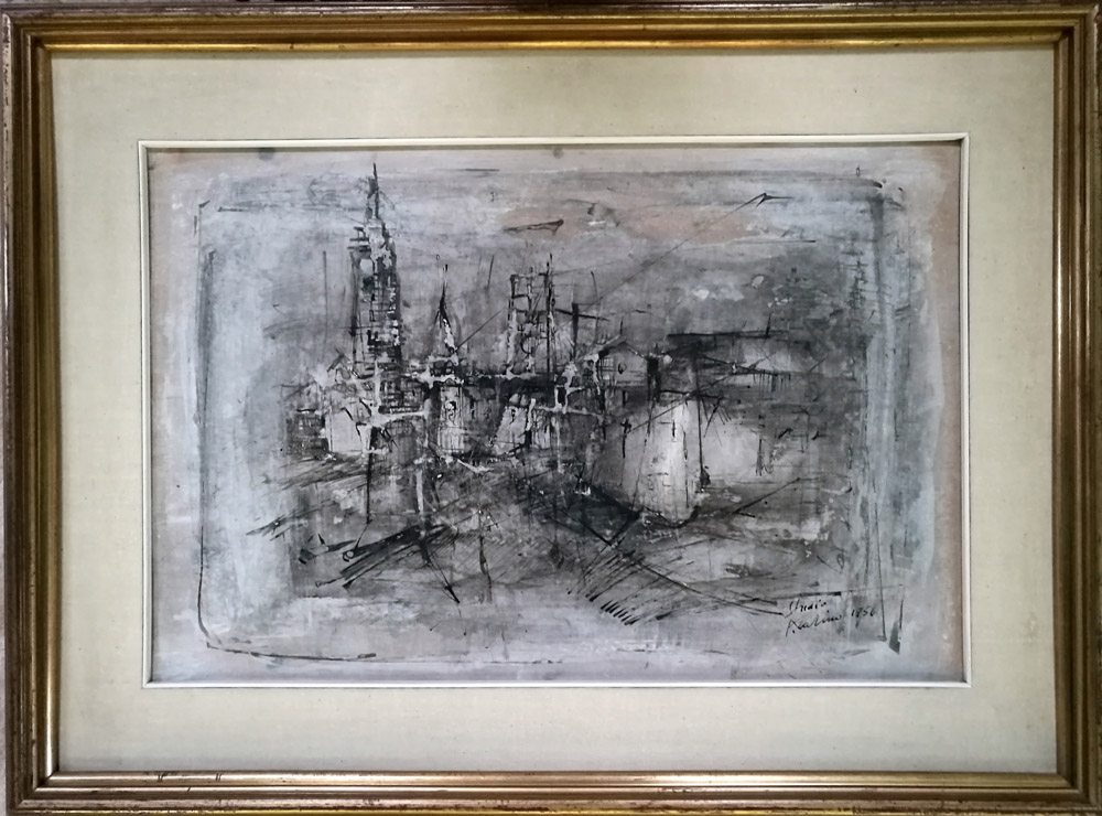 Piero Garino "Periferia (studio)" - 1958 - Tecnica mista su cartone - cm 40x60 - Firma dell'artista e data in basso a dx - Provenienza Galleria Accademia To
