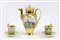Lotto composto da coppia di tazze in porcellana dorata con piattini e teiera,...