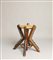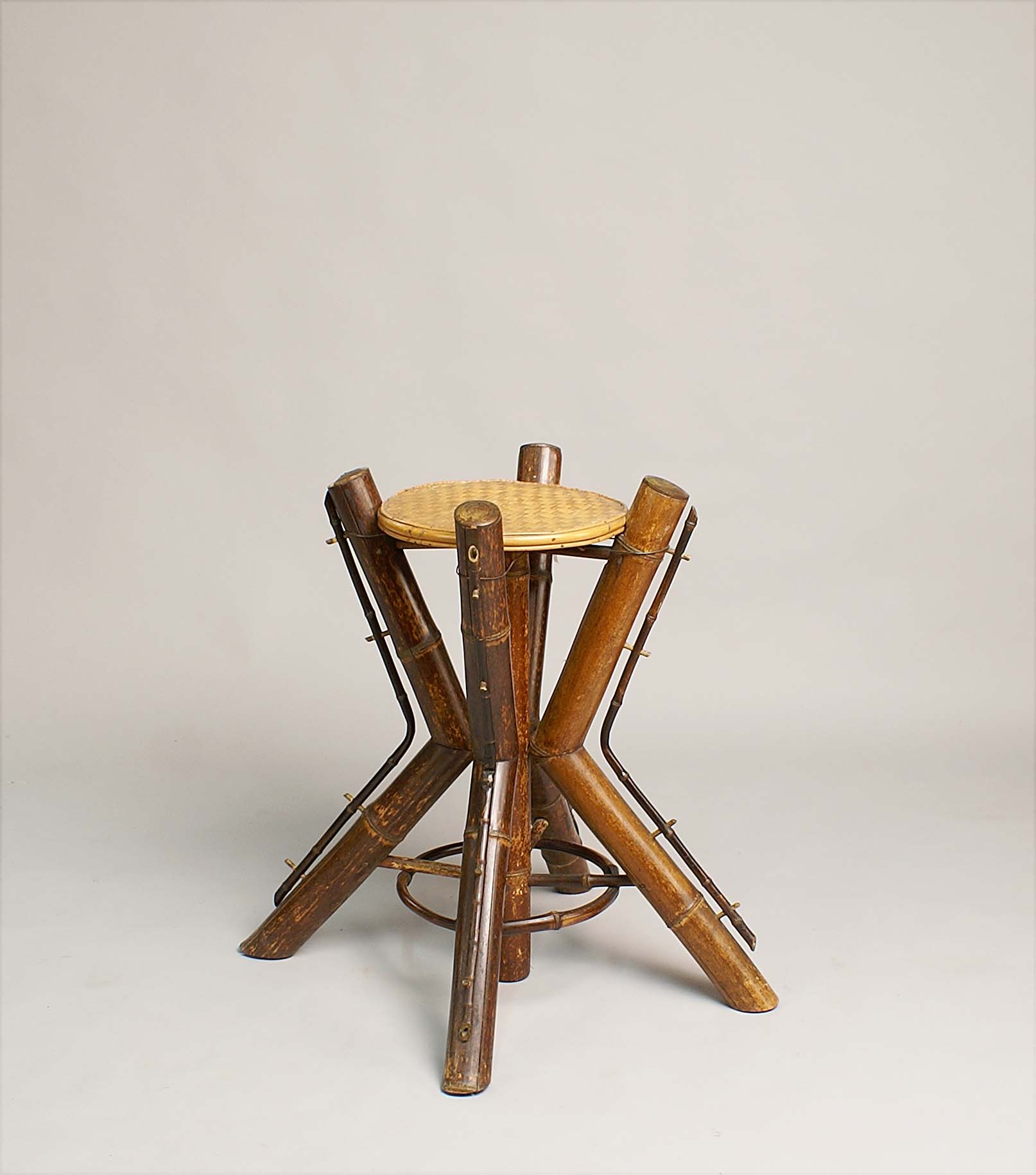 Particolare gueridon in legno di bambù e midollino, cm. 72x50x50.