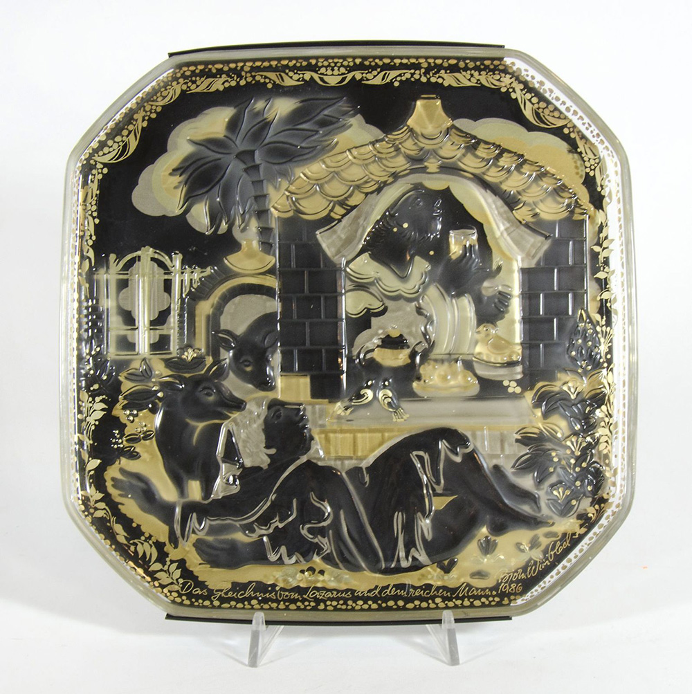 Rosenthal: piatto da parete ottagonale in cristallo lavorato. cm. 30x30.