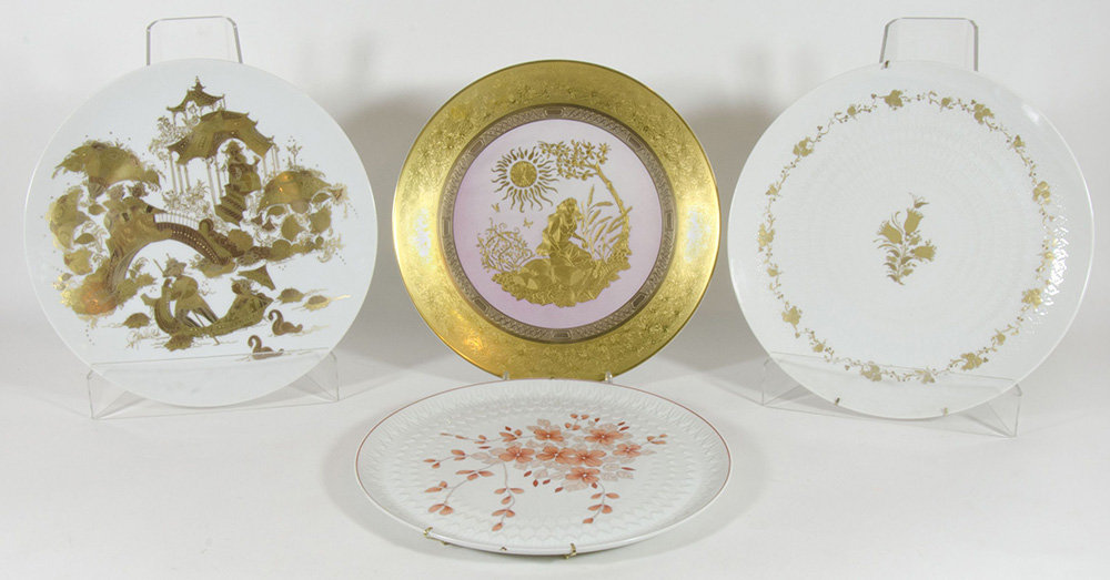 Lotto di 4 piatti in porcellana policroma tra cui 2 Rosenthal.