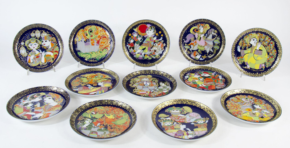 Rosenthal: lotto di 12 piatti in porcellana policroma della serie "Aladin und...