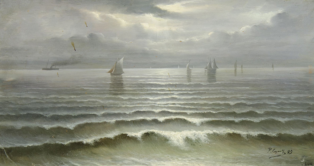 Maestro del XIX secolo "Piccola marina" cm. 21x40 - olio su tavoletta