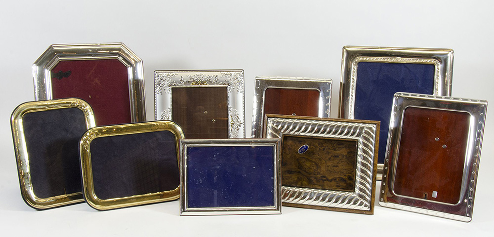 Lotto di varie cornici portafoto in metallo.