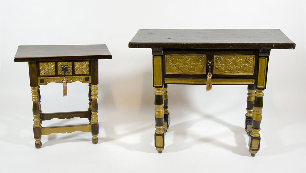 Lotto di 2 tavolini in legno con cassetto.