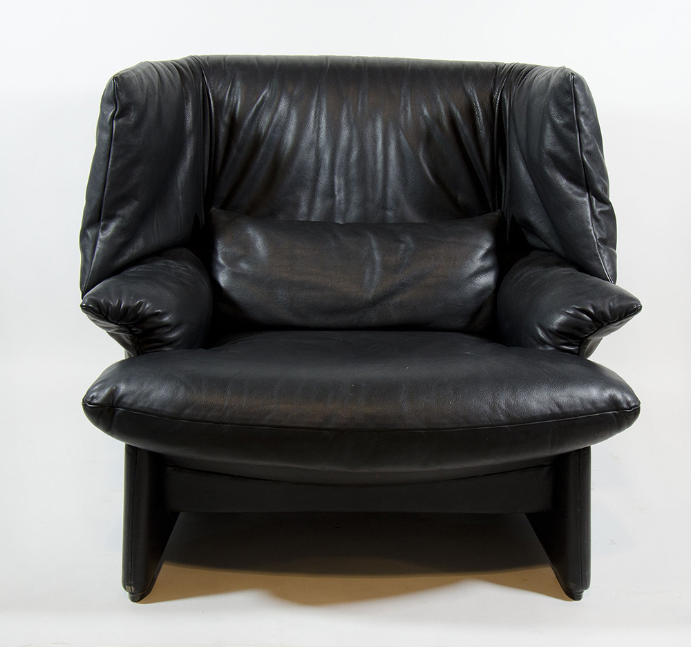 Grande poltrona a pozzetto in pelle nera.