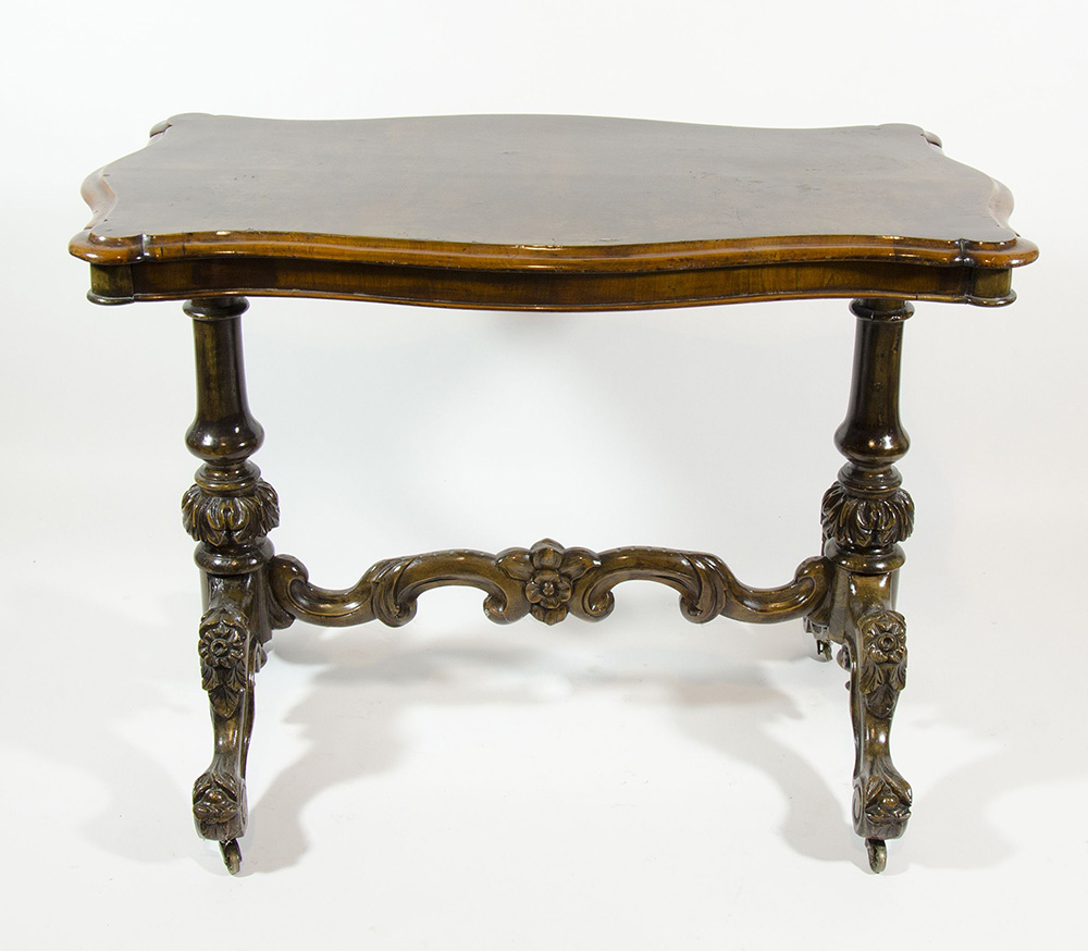 Tavolo rettangolare in legno su gambe scolpite unite da traversa scolpita....