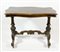 Tavolo rettangolare in legno su gambe scolpite unite da traversa scolpita. cm. 73x101x56.