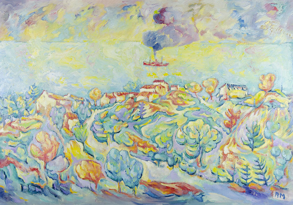 Adriano Micoli Trieste 1929 "Esplosione d'estate" cm. 70x100 - olio su faesite Siglato b. a d.