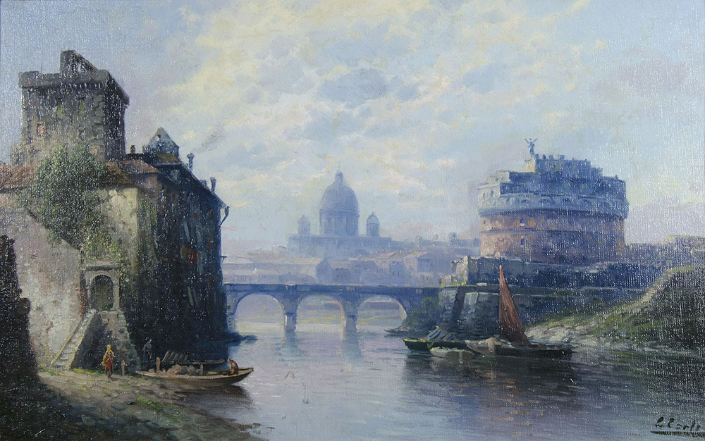 Maestro del XIX secolo "Castel Sant'Angelo" cm. 37x58 - olio su tela foderata Firmato b. a d.