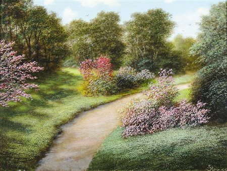 Guglielmo Stracca Gradisca 1899-Trieste 1979 "Vialetto in fiore" cm. 29x38 -...