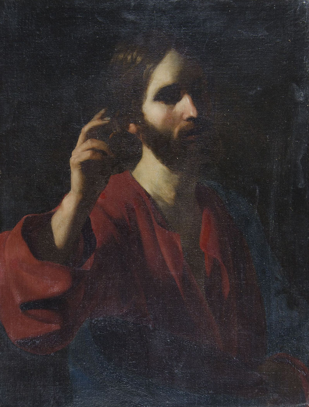 Maestro caravaggesco del XVII secolo " Cristo Benedicente " cm. 77x60 - olio su tela foderata Si ringrazia il Prof. Francesco Petrucci per aver indicato l'idea sull'attribuzione a un maestro Nordico operante nell'ambito di Bartolomeo Manfredi (1582-1622).
