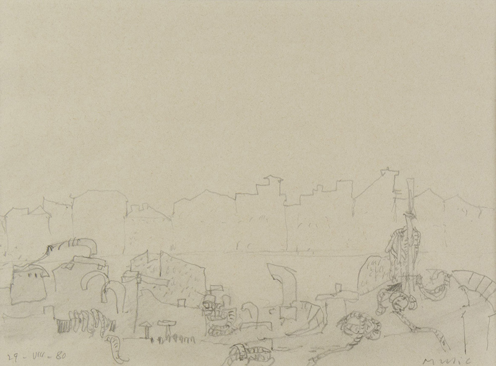 Anton Zoran Music Gorizia 1909-2005 "Alle Zattere, Venezia" (1980) cm. 22x28 - matita su carta Firmato b. a d. e datato '80.