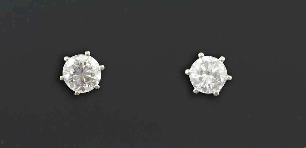 Paio di orecchini in oro e 2 diamanti. (colore G SI2 di 0,55ct e colore E-F SI1 di 053ct).