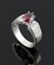 Anello in platino con rubino naturale al centro per 1,70ct su griffe a 6 punte, diamanti taglio Princess per 3ct incastonati in raffinati pavè ai lati. gr tot 9,20.