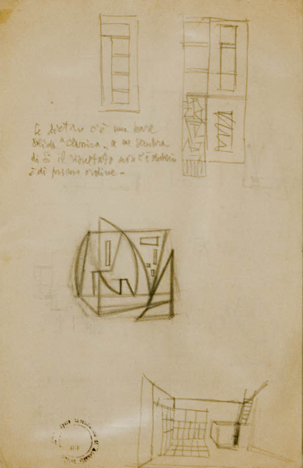 Atanasio Soldati - Settimo giorno,2 luglio 1952 - 1940 disegno a matita su carta fronte e retro cm. 31x20. Archivio Soldati n. 1319