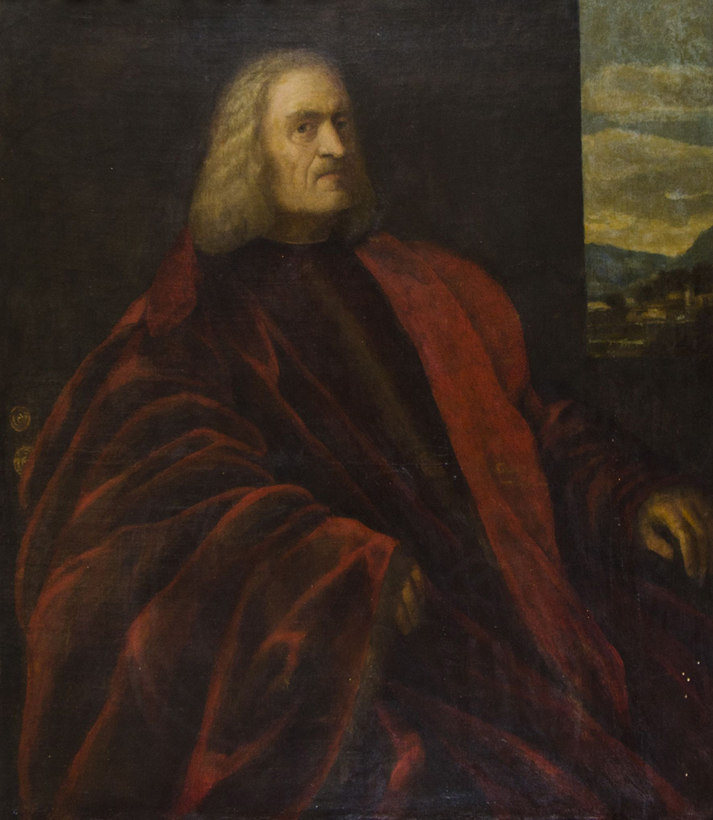Ambito di Tiziano Vecellio 1488-1576 "Ritratto di Magistrato" cm. 110x92 - olio su tela foderata