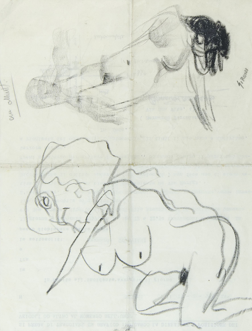 Mario Sironi Sassari 1884-Milano 1961 "Modelle" cm. 27x21 - matita su carta Firmato alto a d. Al retro Galleria Colussa Udine. Pubbl.: catalogo Sironi 1995 a cura Colussa Galleria d'ate Udine.