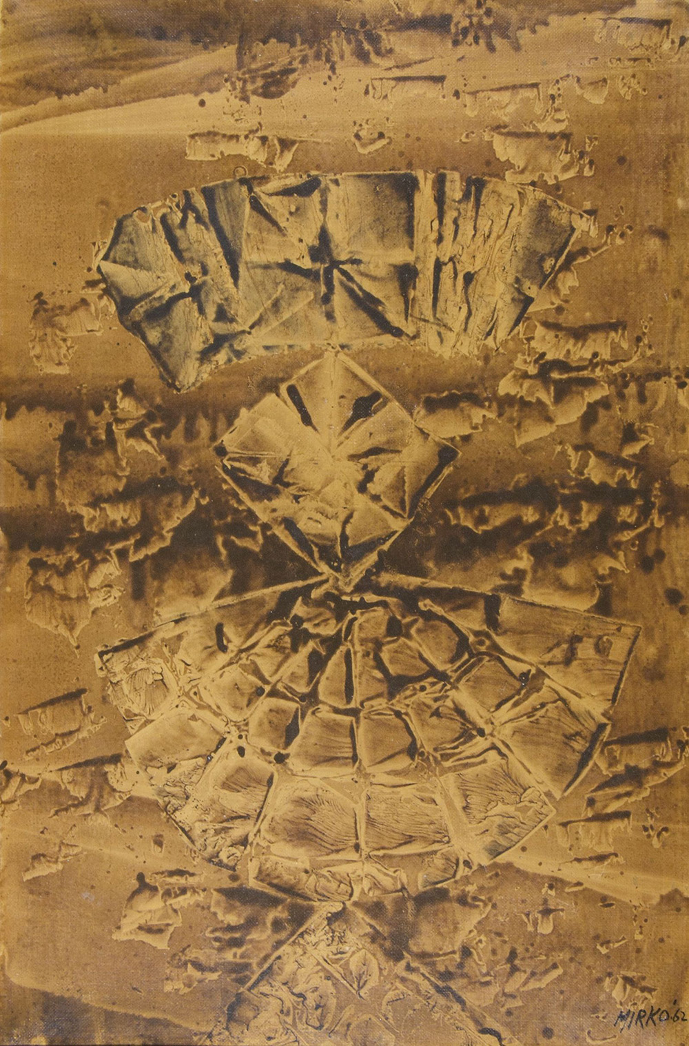 Mirko Basaldella 1910-1969 "Composizione" cm. 75x50 - tecnica mista su carta su tela Firmato b. a d. e datato '62. Autentica su fotografia.