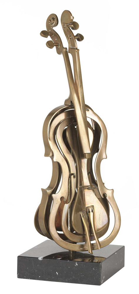 Arman, Nizza 1928 - 2005, Violino sezionato, Scultura in bronzo dorato, multiplo, es. 95/100, cm. 56 h. (cm. 61 h. con base), Firma in basso: Arman, tiratura a sinistra: 95/100