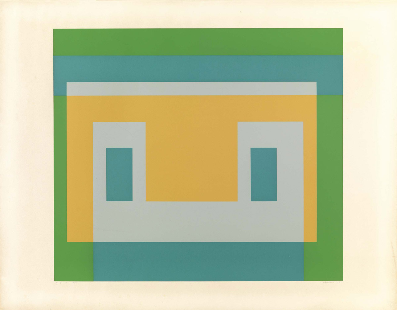 Josef Albers, Bottrop 1888 - New Haven 1976, I-S Va I, 1969, Serigrafia a colori, es. 09/150, cm. 57x66 (lastra), cm. 70,6x91,3 (carta), Firma e data a matita sul margine in basso a destra: Albers '69, titolo e tiratura in basso a sinistra: I-S Va I 09/150